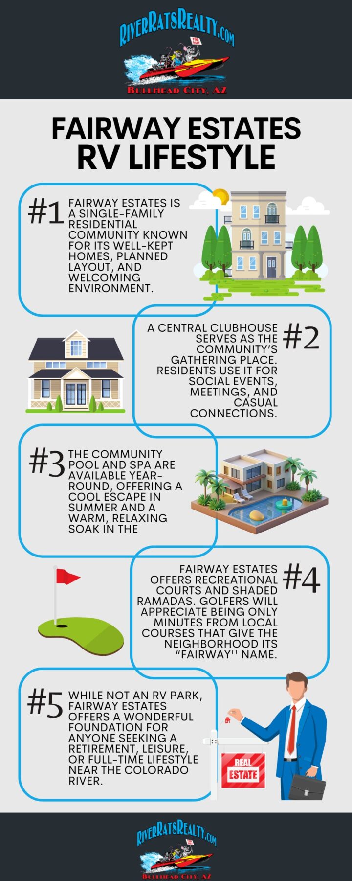 While not an RV park, Fairway Estates offers a wonderful foundation for anyone seeking a retirement, leisure, or full-time lifestyle near the Colorado River.